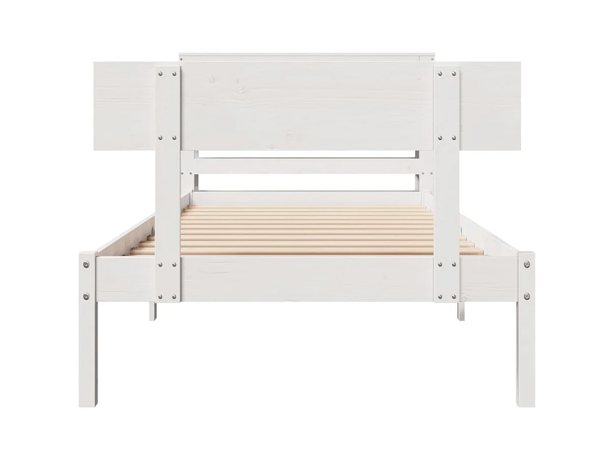 Cama librería blanca sin colchón 75x190cm madera maciza de pino