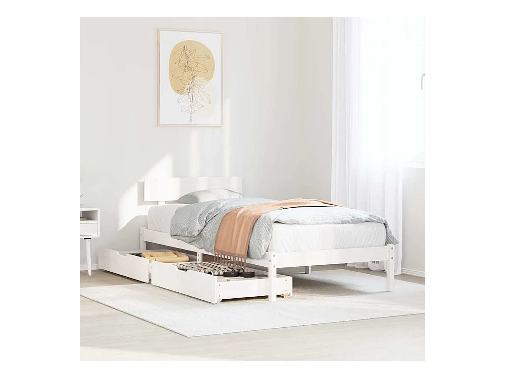 Estructura de cama con cajones blanca 75x190 cm madera maciza de pino