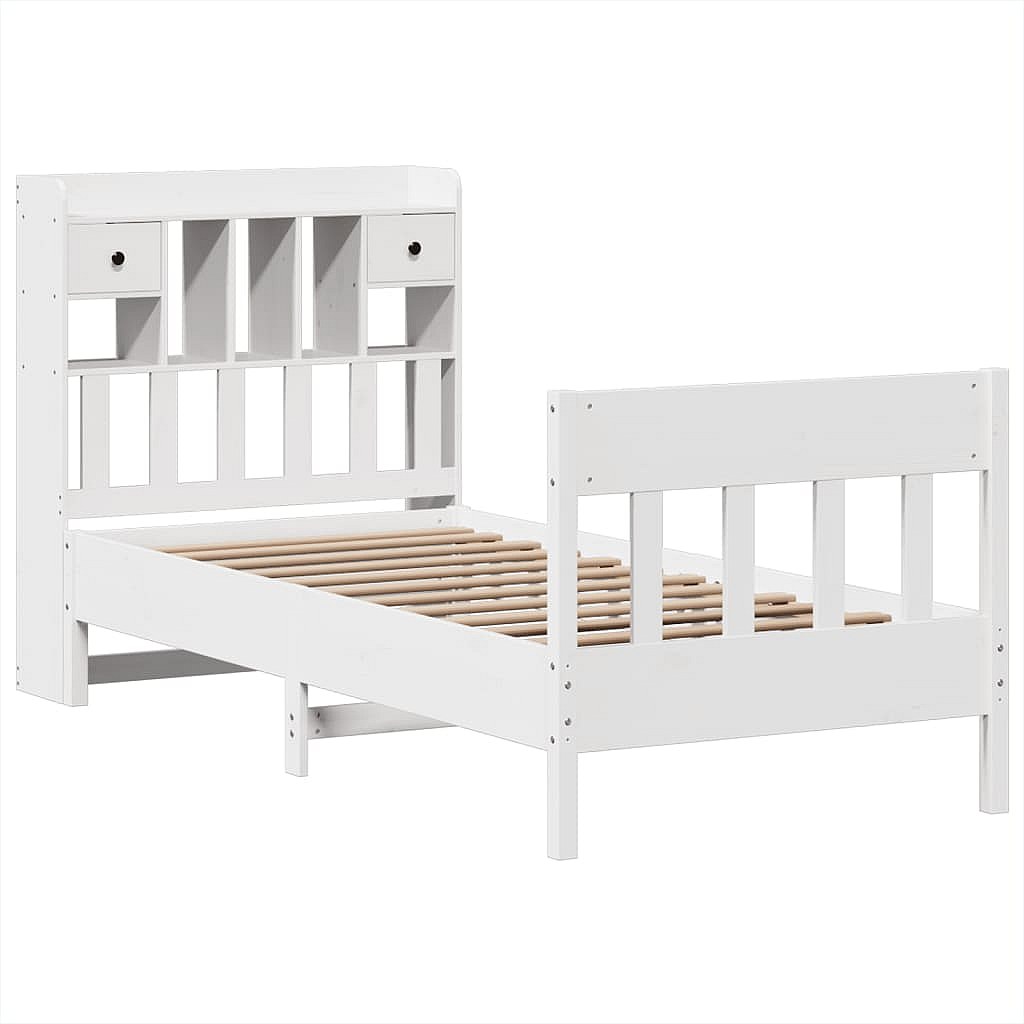 Estructura de cama sin colchón blanca 75x190 cm madera maciza de pino