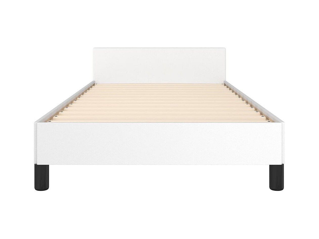 Cama individual- 80x200cm con cabecero cuero sintético blanco ES315155