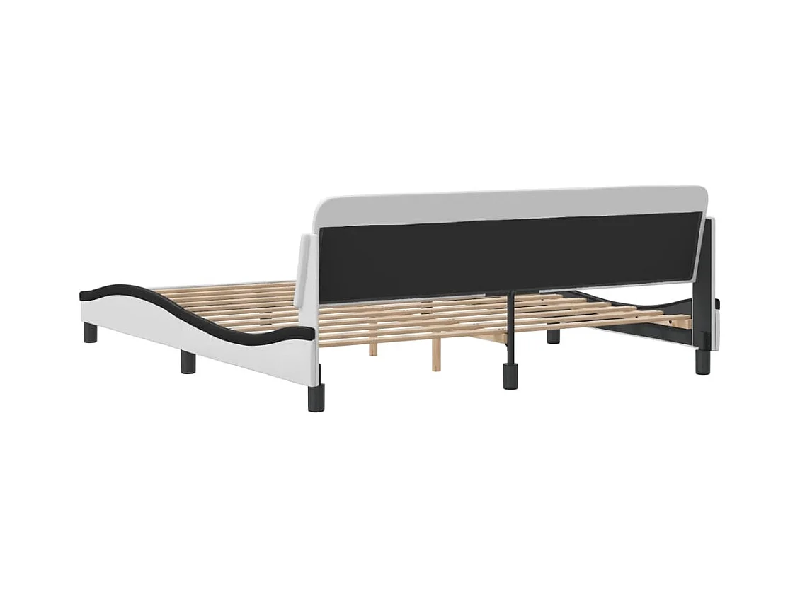 Estructura de cama sin colchón blanca y negra 180x200 cm piel sintética