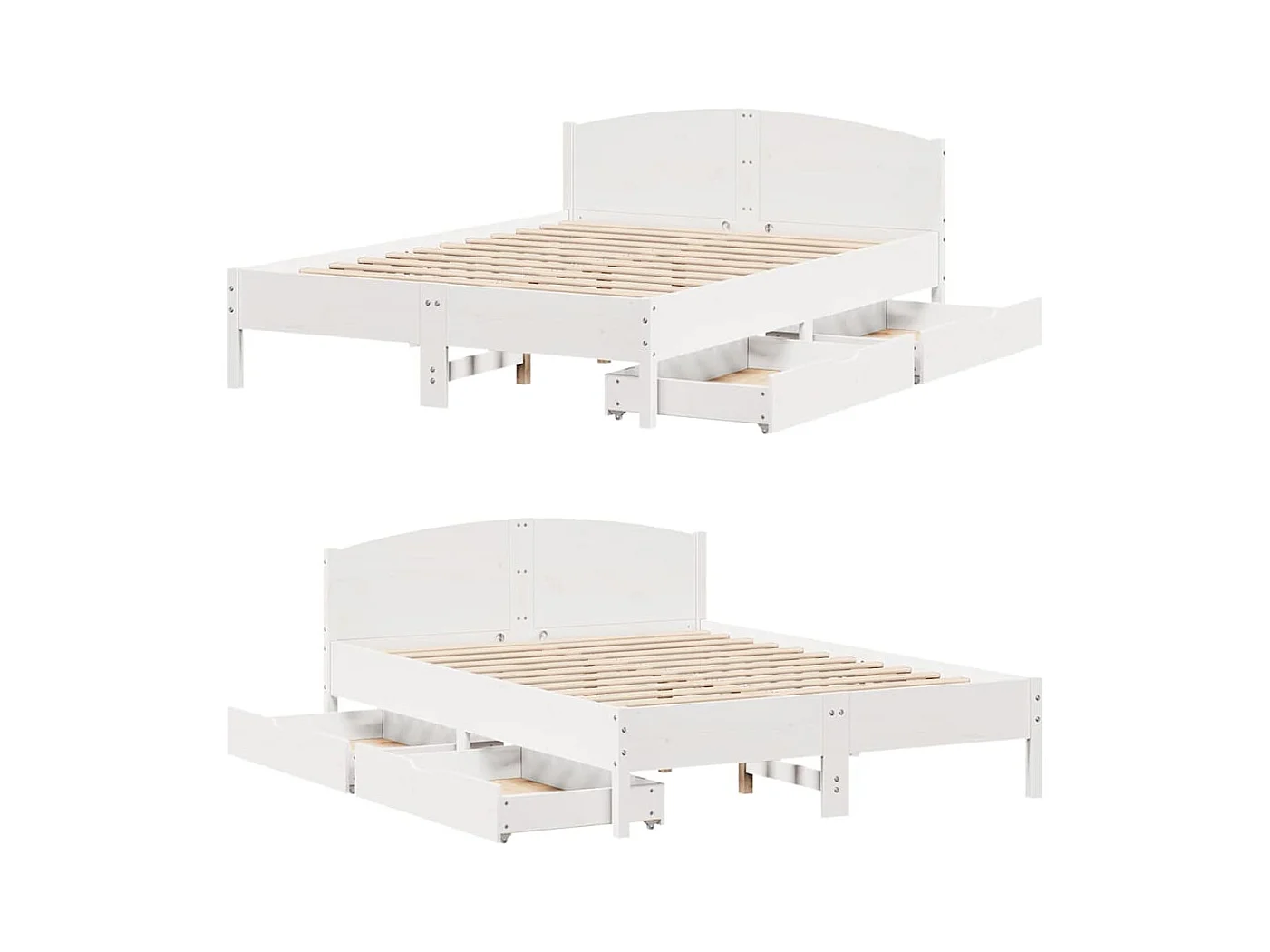 Estructura de cama sin colchón de madera maciza de pino blanco
