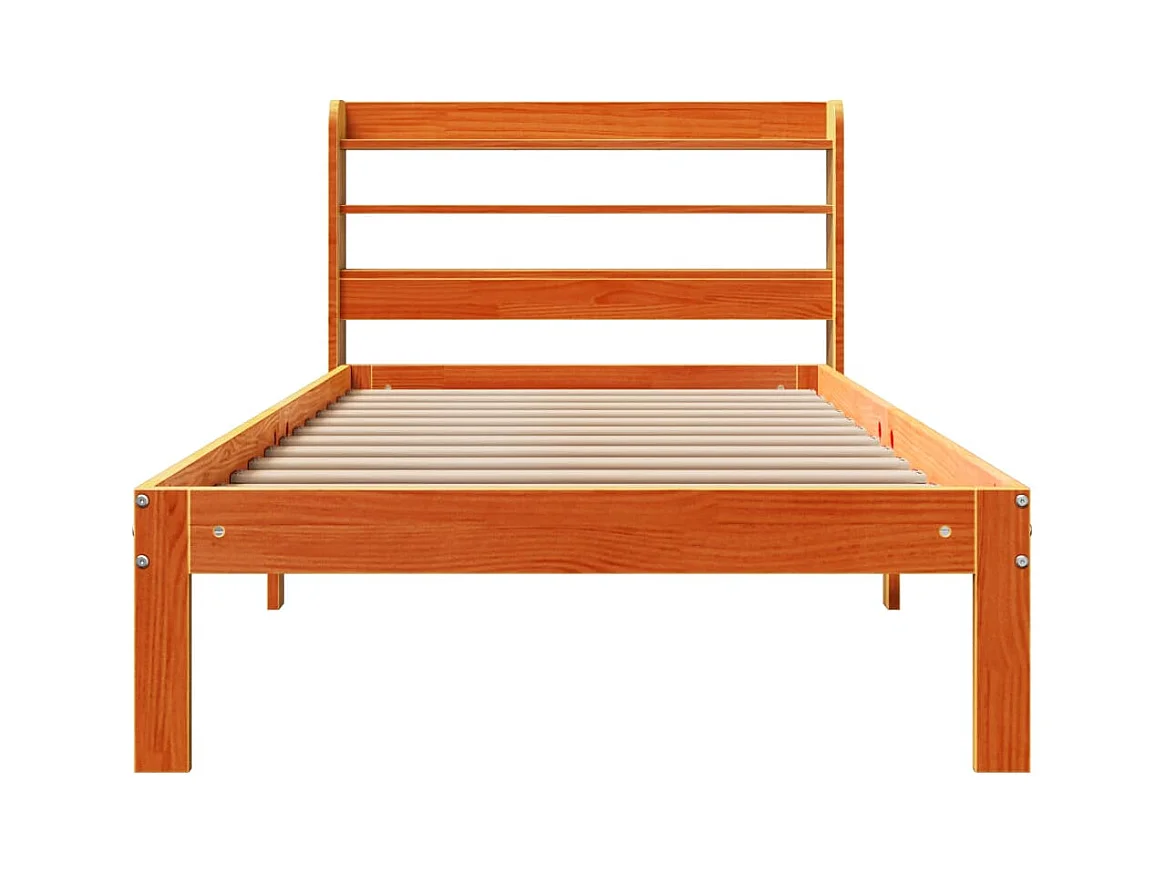 Estructura de cama sin colchón, color marrón cera, 100x200cm, madera maciza de pino