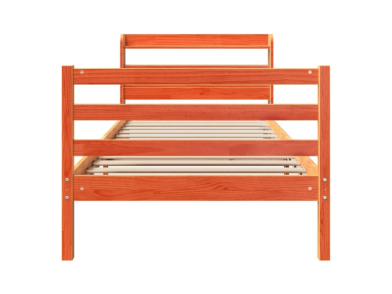 Estructura de cama sin colchón, color marrón cera, 100x200cm, madera maciza de pino