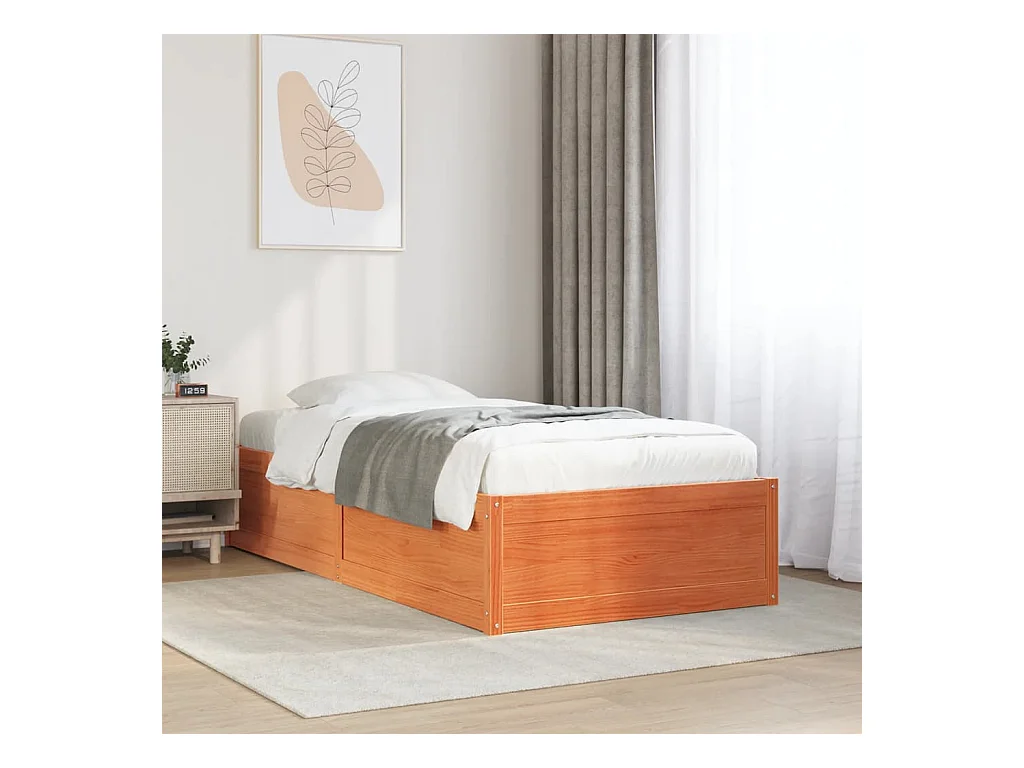 Estructura de cama sin colchón, color marrón cera, 100x200cm, madera maciza de pino