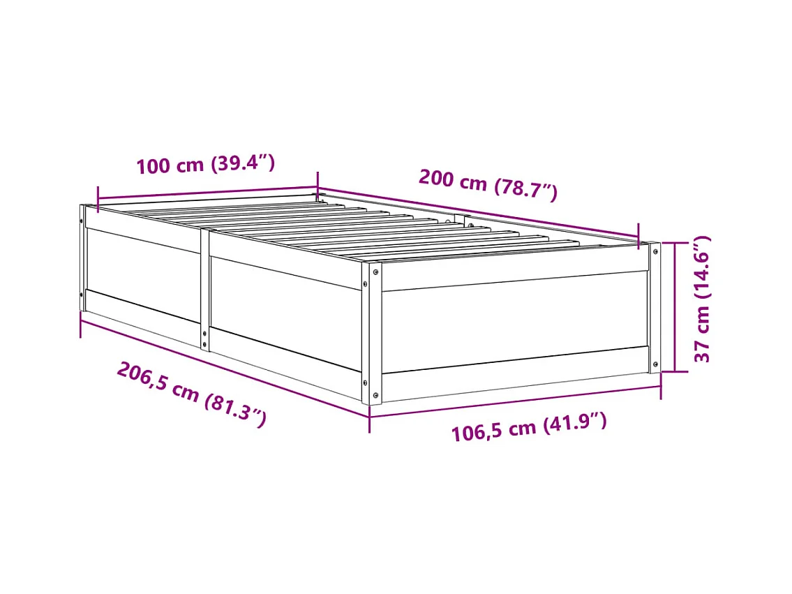 Estructura de cama sin colchón 100x200 cm madera maciza de pino