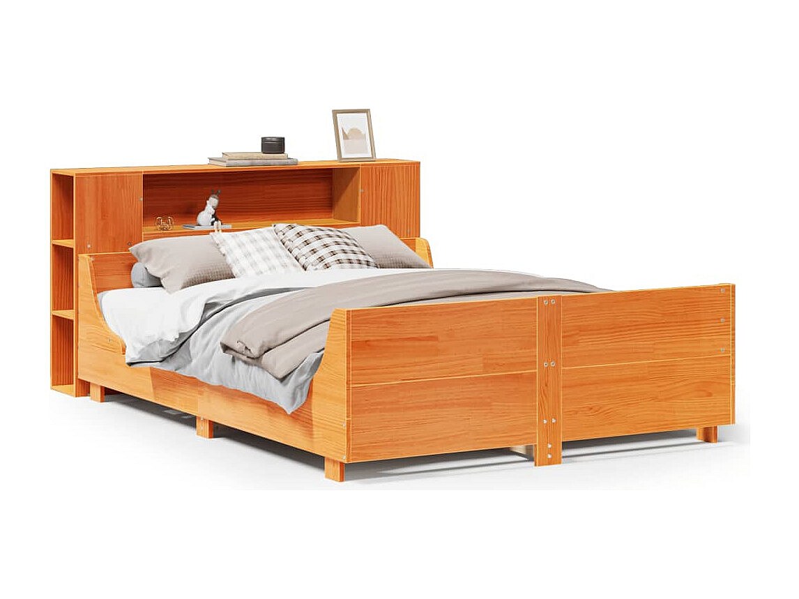 Estructura de cama sin colchón, color marrón cera, 140x200cm, madera maciza de pino