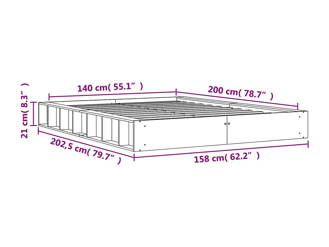 Estructura de cama sin colchón, color marrón cera, 140x200cm, madera maciza de pino