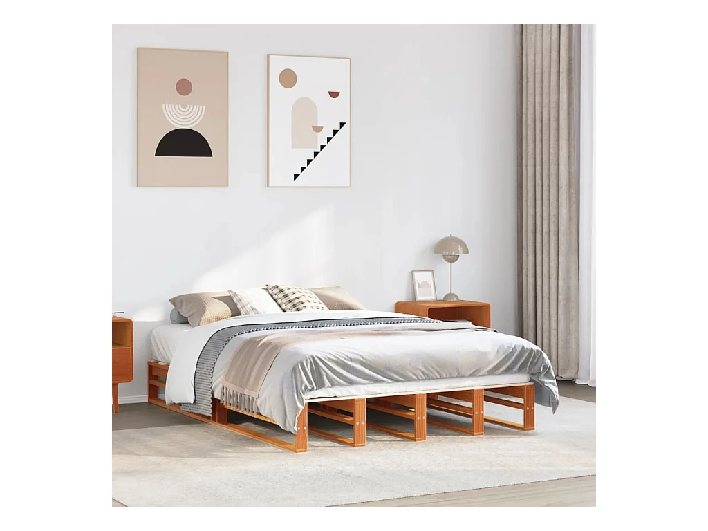Estructura de cama sin colchón, color marrón cera, 160x200cm, madera maciza de pino