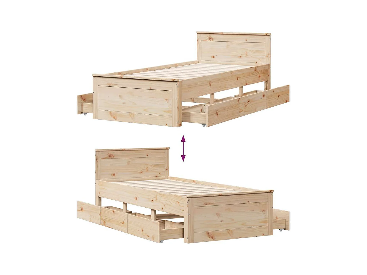 Estructura de cama con cajón Marrón 75 x 190 cm Madera maciza de pino