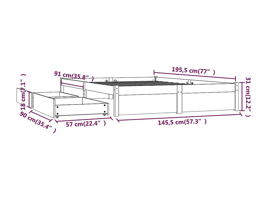 Estructura de cama sin colchón con cajones blanca