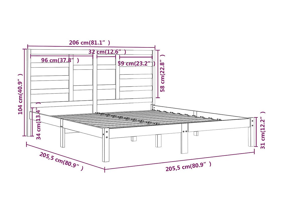 Estructura de cama sin colchón 200x200 cm madera maciza