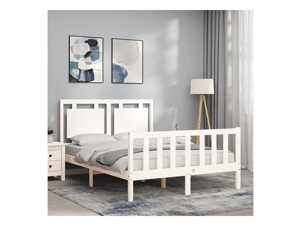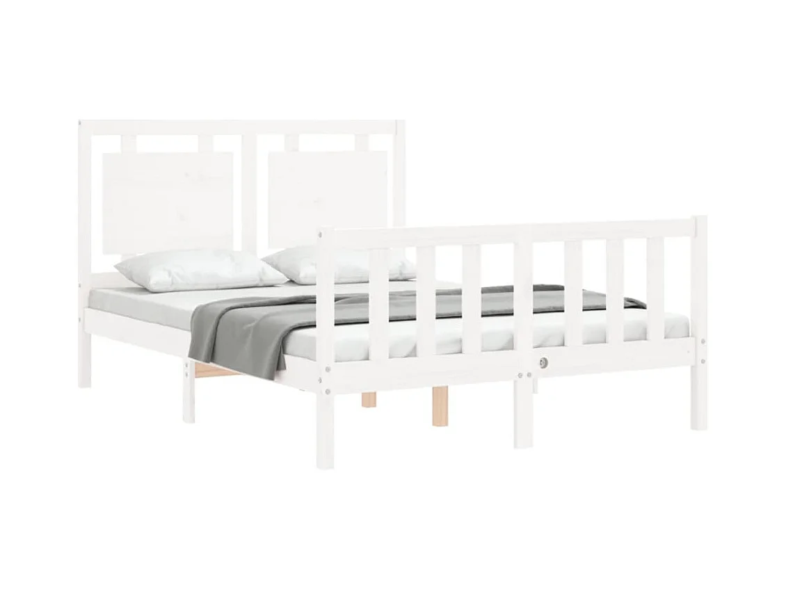 Estructura de cama de madera maciza blanca sin colchón