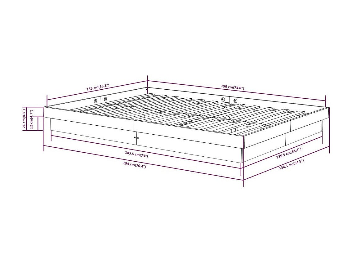 Estructura cama madera ingeniería metal gris Sonoma 135x190 cm