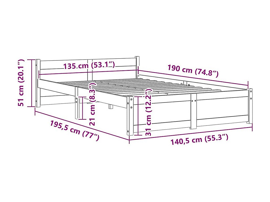 Estructura de cama sin colchón de madera maciza negra 135x190 cm