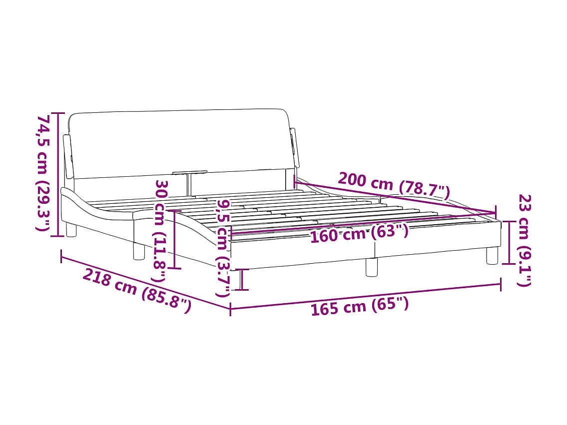 Estructura de cama con LED sin colchón blanco y negro 160x200 cm