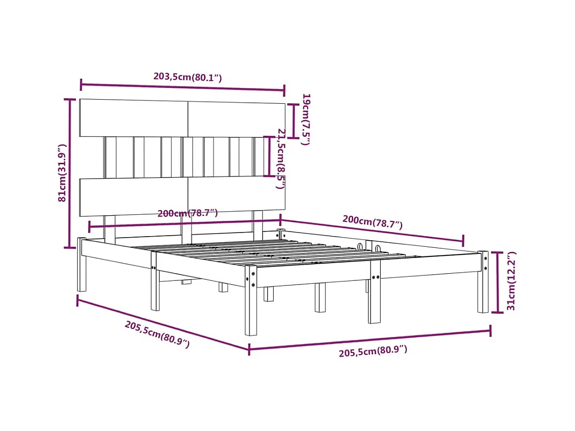 Estructura de cama sin colchón gris 200x200 cm madera maciza
