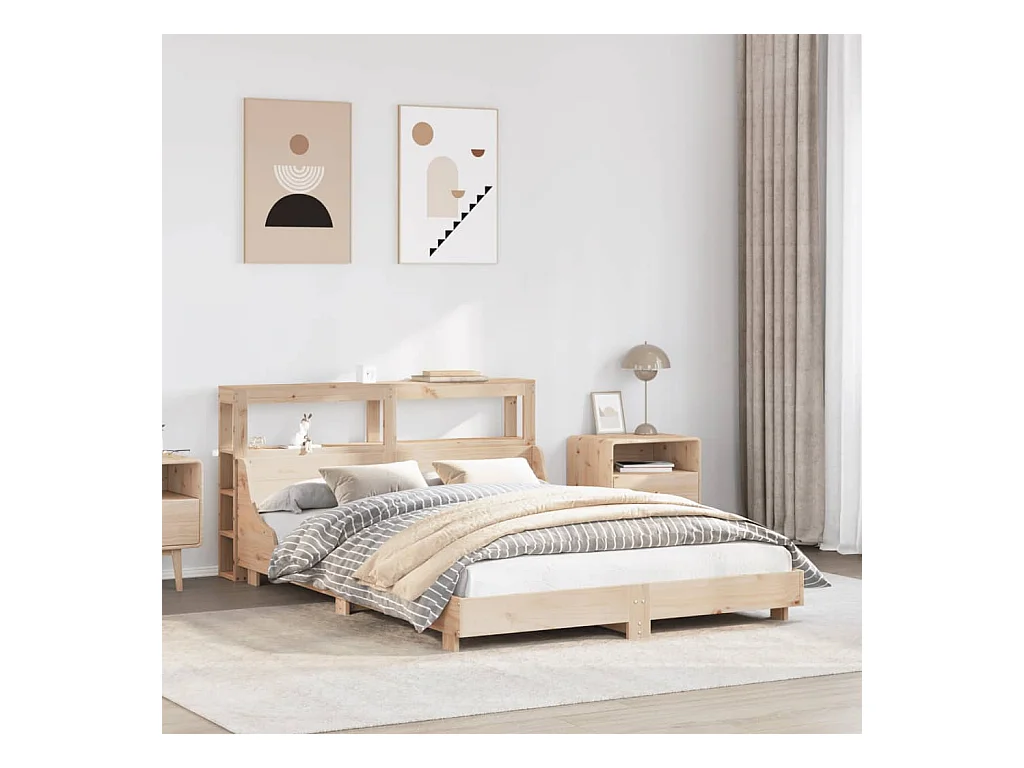 Cama sin colchón madera maciza pino marrón cera 150x200 cm