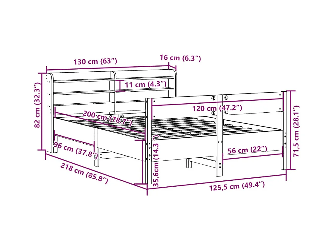 Estructura de cama sin colchón madera de pino maciza 120x200 cm
