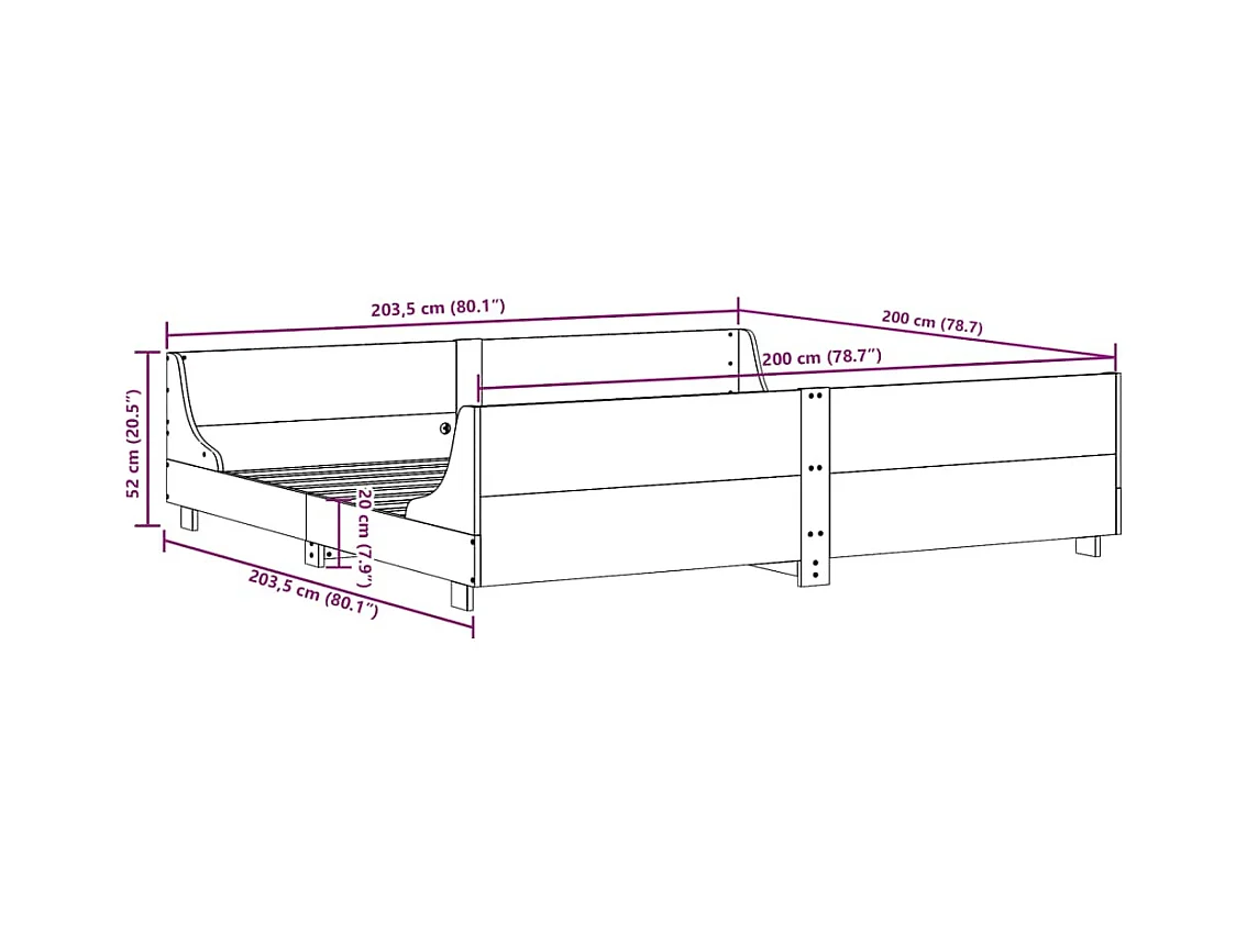 Estructura de cama sin colchón madera maciza de pino 200x200 cm