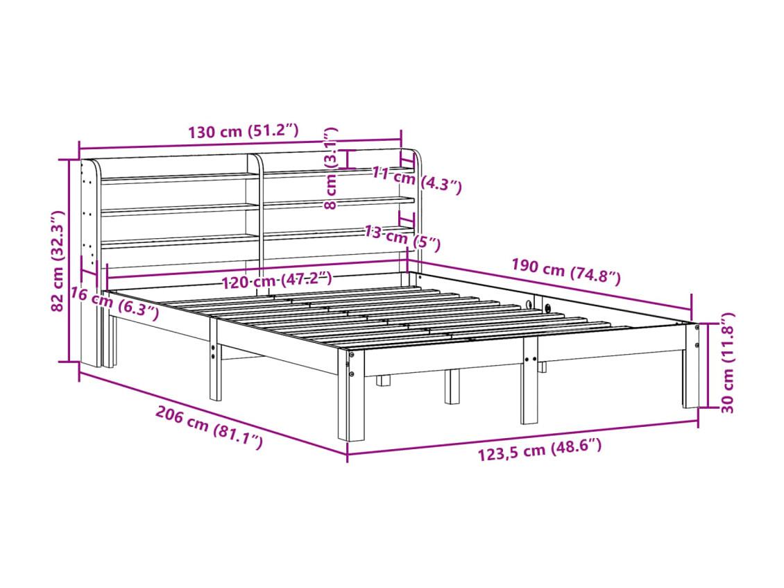 Estructura cama con cabecero madera pino marrón cera 120x190 cm