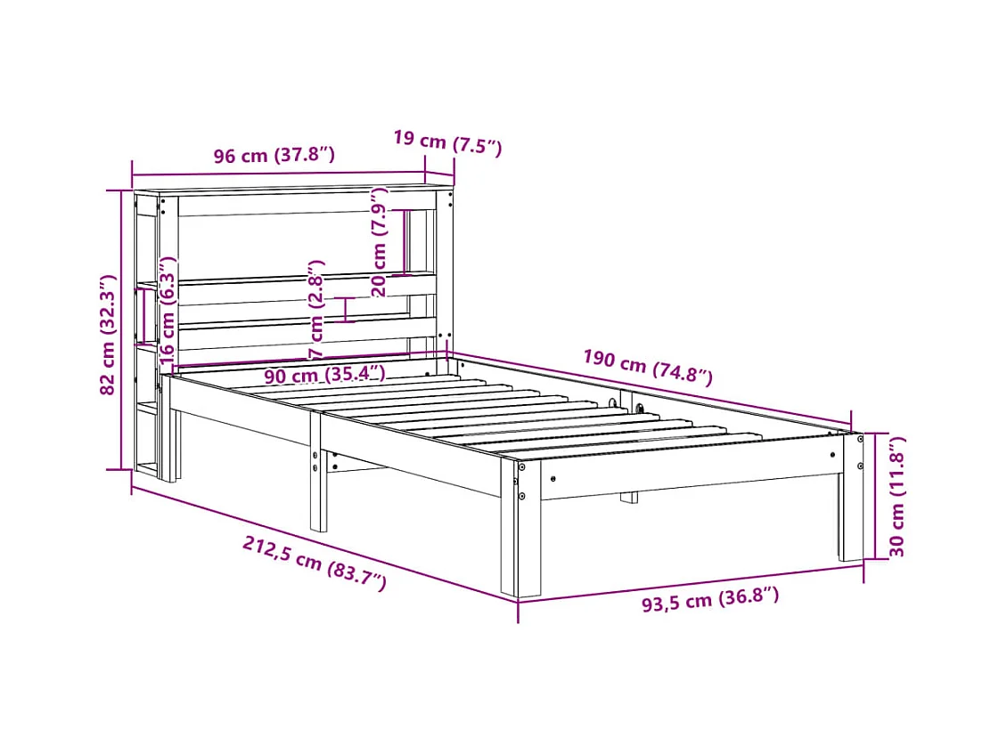 Cama con estantería sin colchón madera maciza de pino 90x190 cm