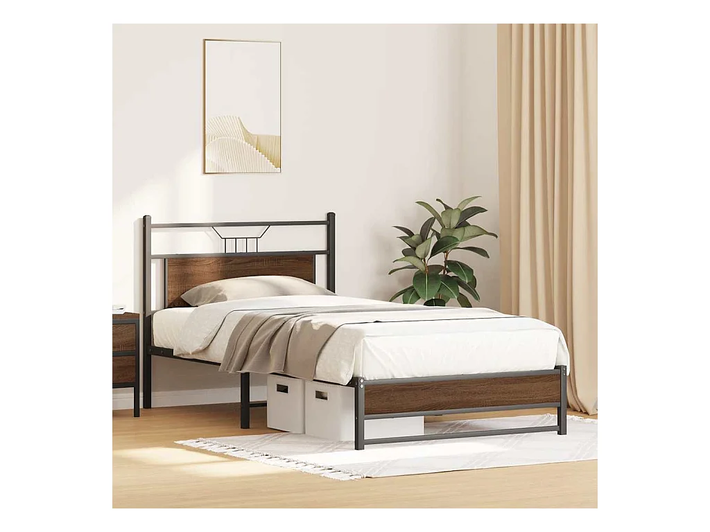 Estructura de cama sin colchón 107x203 cm madera marrón roble