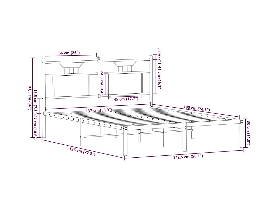Estructura de cama sin colchón metal roble Sonoma 183x213 cm