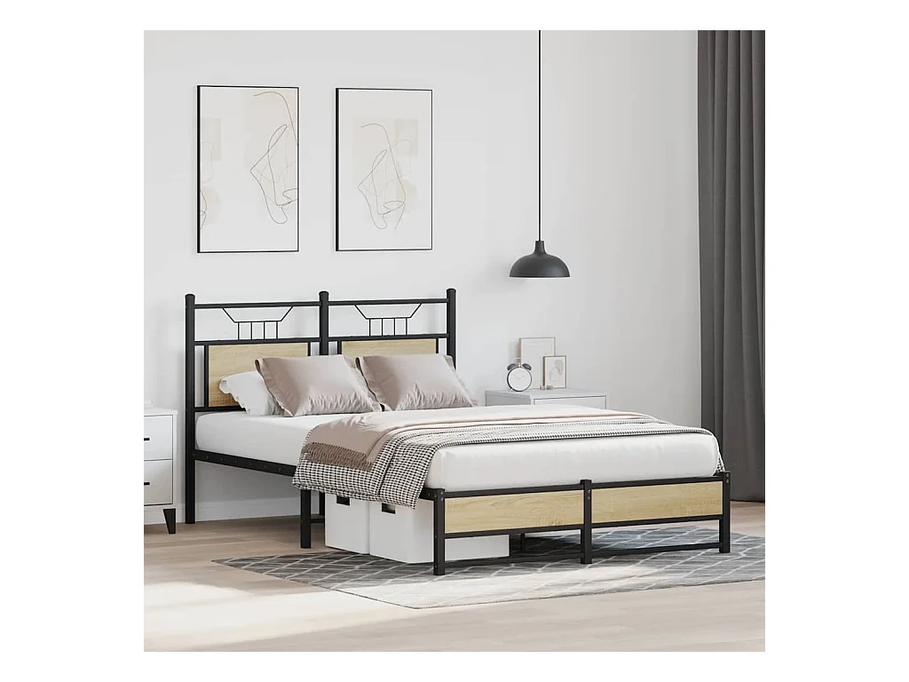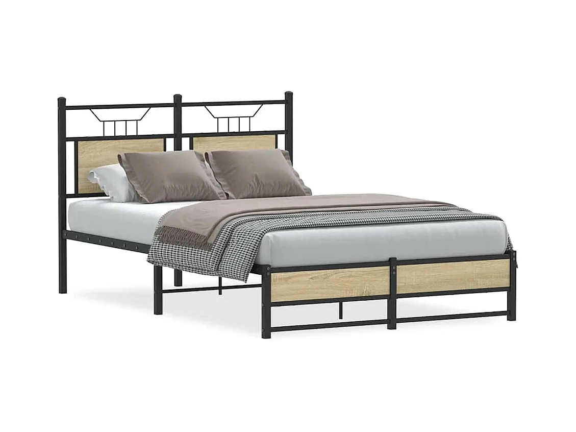 Estructura cama con cabecero sin colchón roble Sonoma 120x190cm