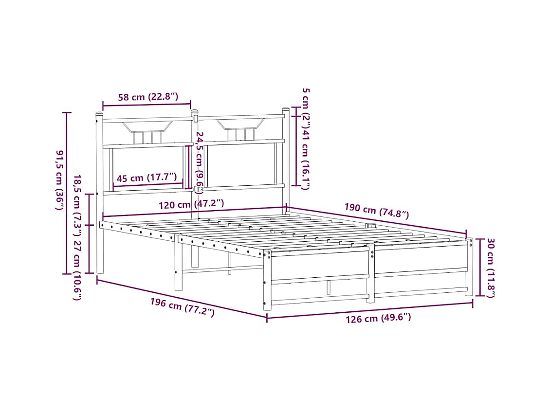 Cama - Metal Tamaño 140x190cm (doble estándar)
