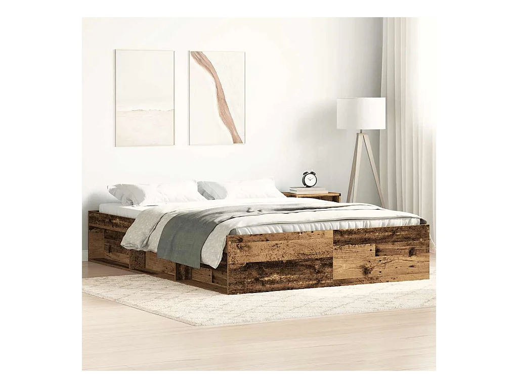 Estructura de cama sin colchón madera vieja 140x190 cm madera de ingeniería