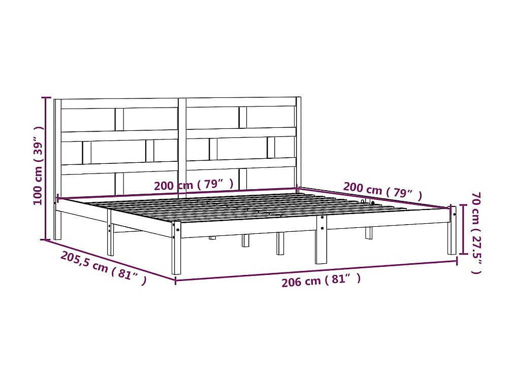 Estructura de cama sin colchón 200x200 cm madera maciza