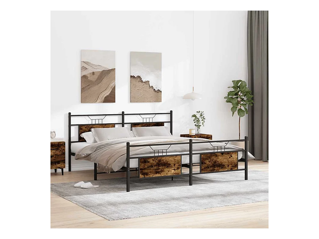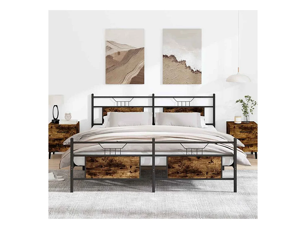 Estructura de cama sin colchón metal roble ahumado 180x200 cm