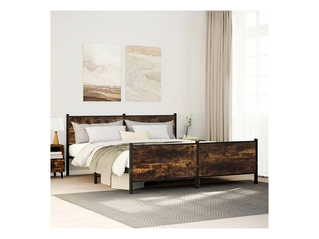 Estructura de cama sin colchón metal roble ahumado 193x203 cm