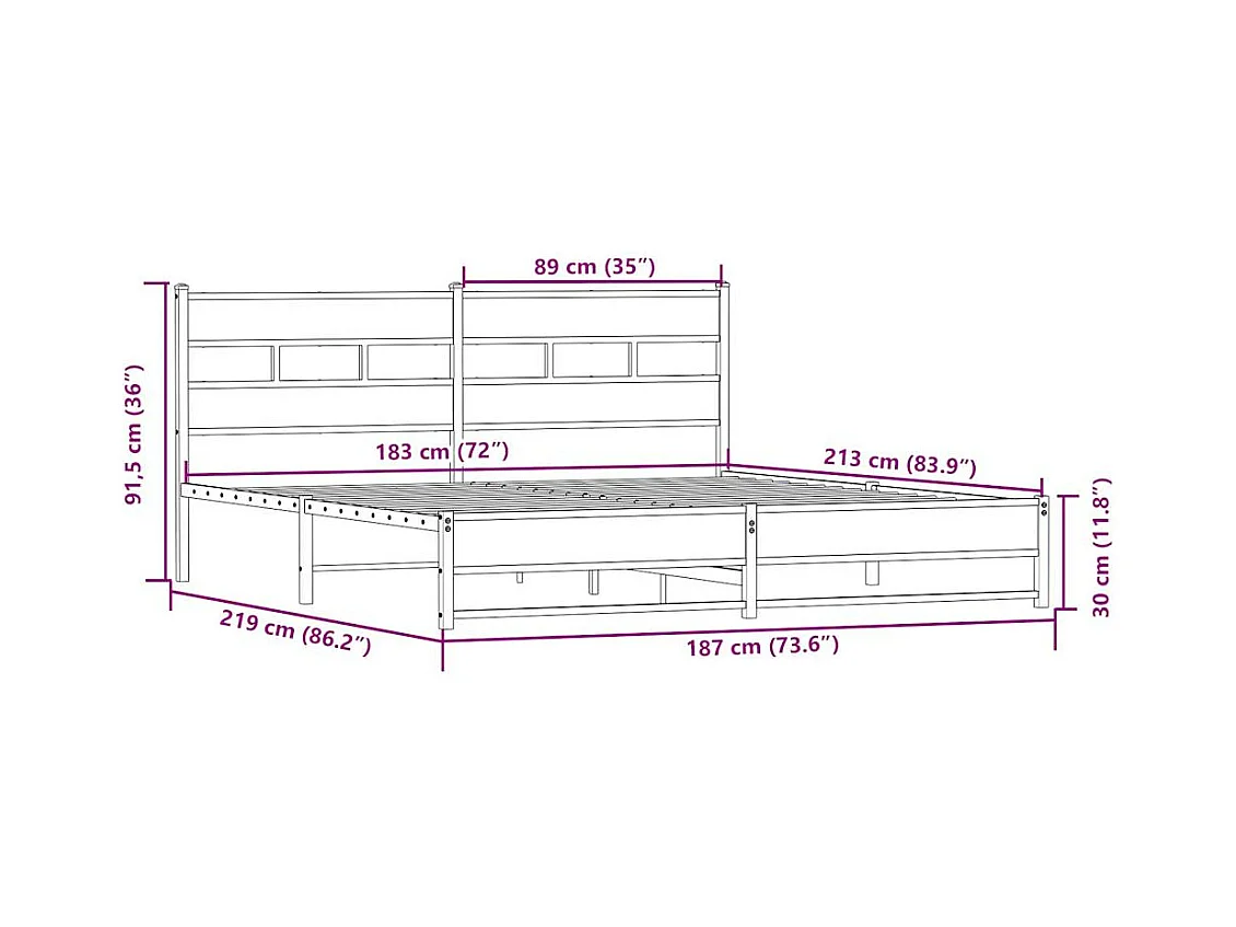 Estructura de cama sin colchón metal roble Sonoma 183x213 cm