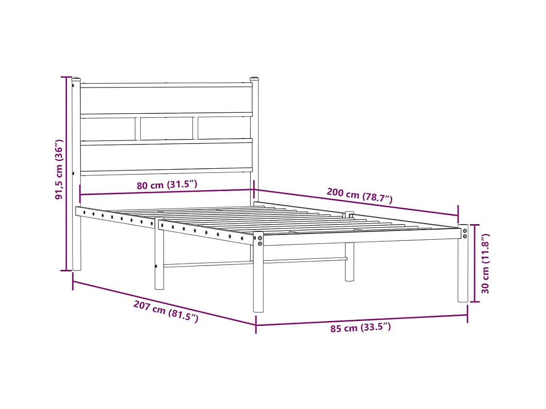 Estructura de cama sin colchón metal roble Sonoma 80x200 cm