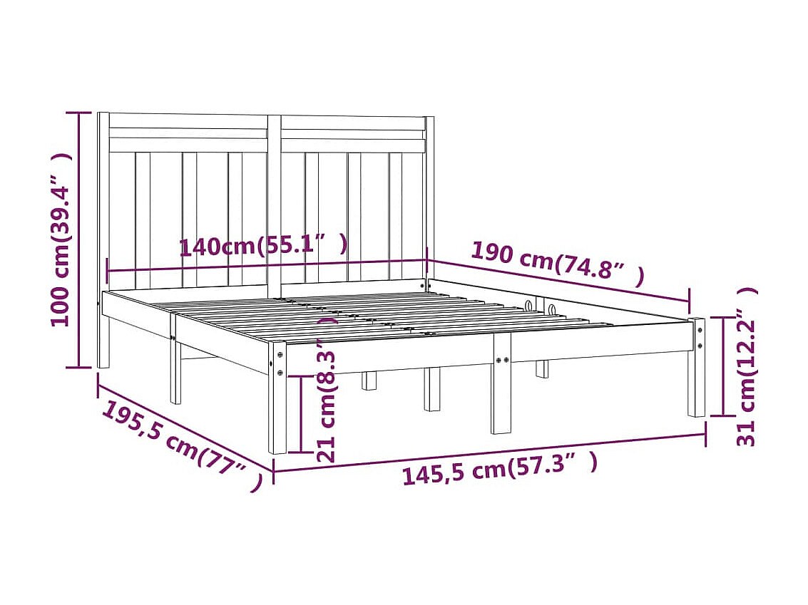 Estructura de cama sin colchón negra 140x190 cm madera maciza
