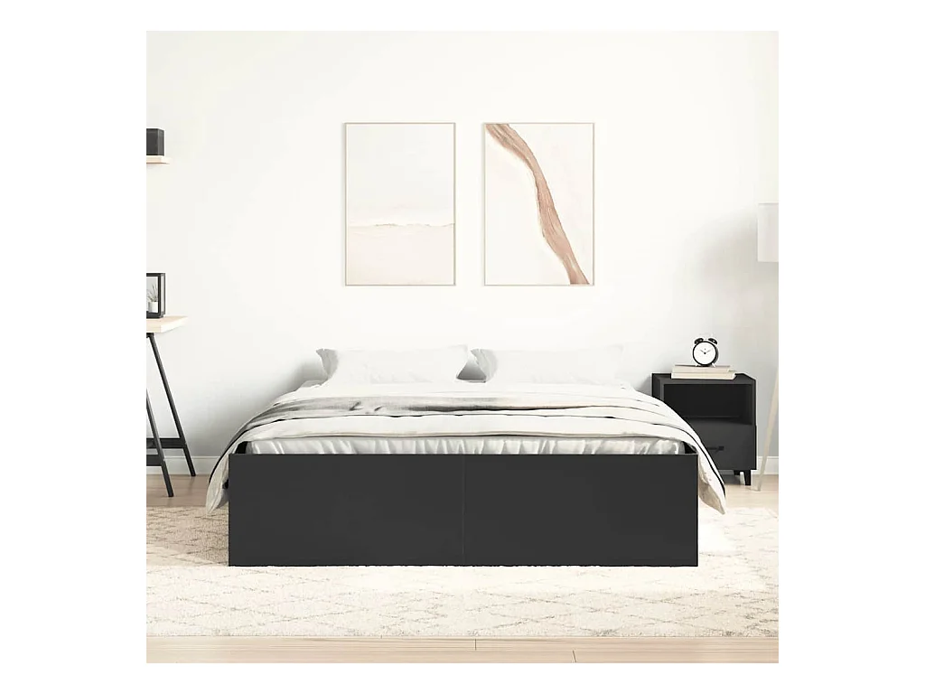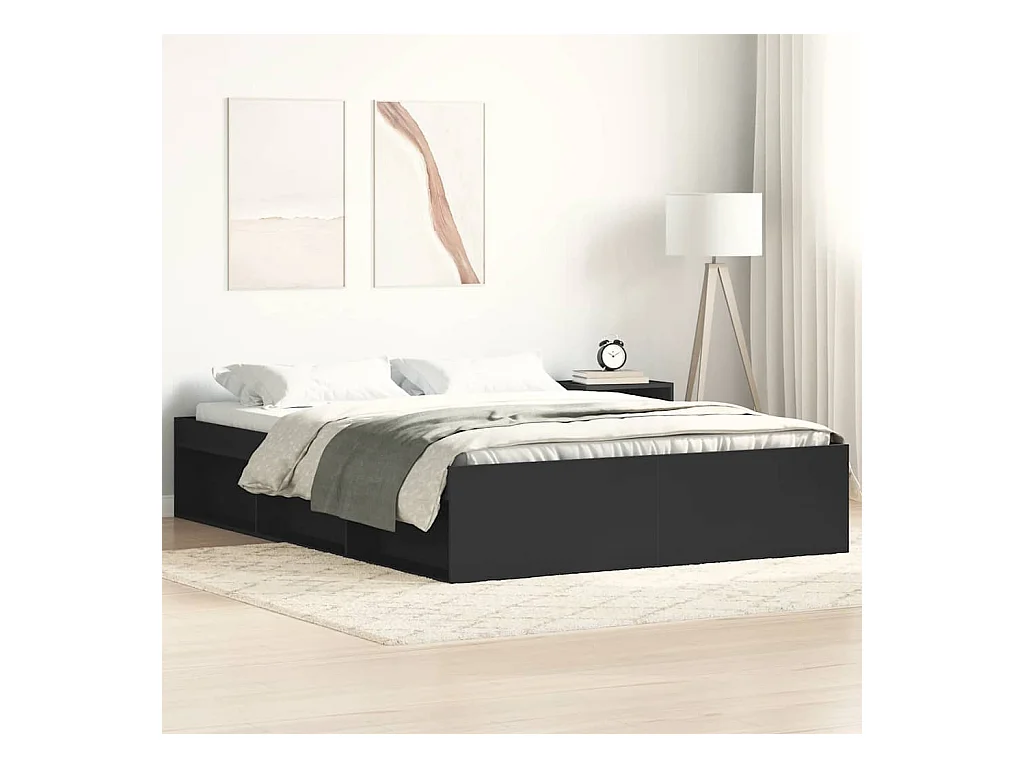 Cama matrimonial- 150x200 cm madera de ingeniería negra ES199508