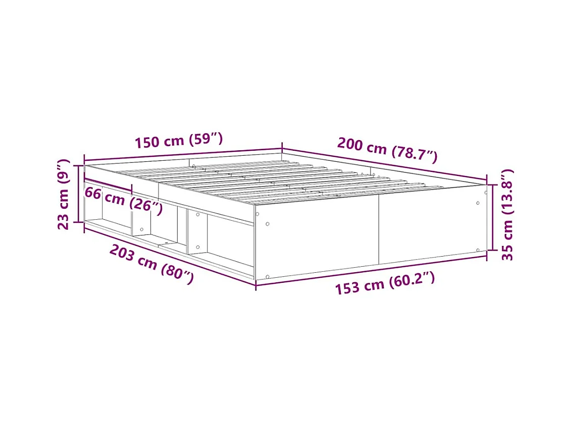 Cama matrimonial- 150x200cm madera de ingeniería y metal negro ES250469