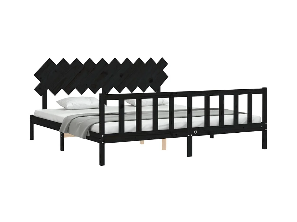 Estructura de cama sin colchón negra 200x200 cm madera maciza de pino