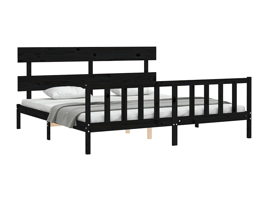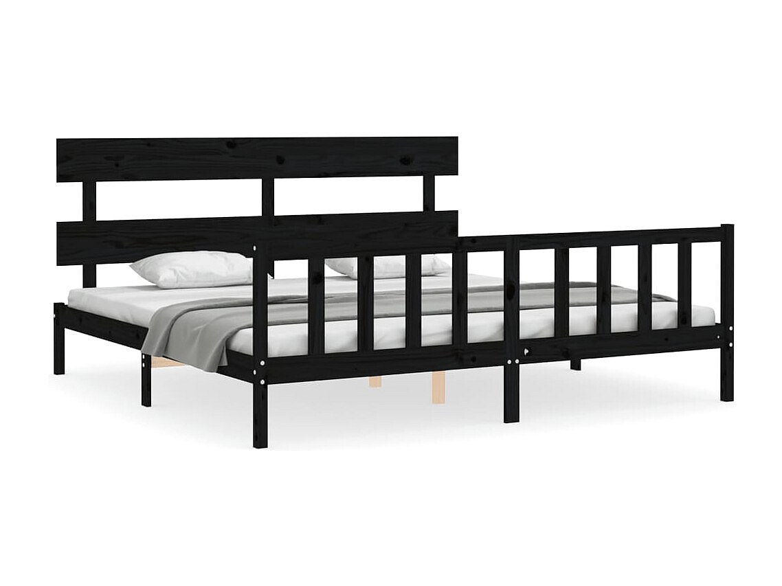 Estructura de cama sin colchón negra 200x200 cm madera maciza de pino