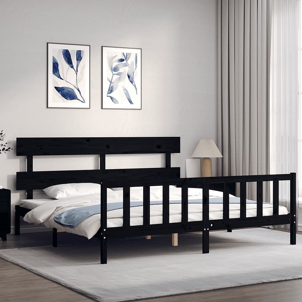 Estructura de cama sin colchón negra 200x200 cm madera maciza