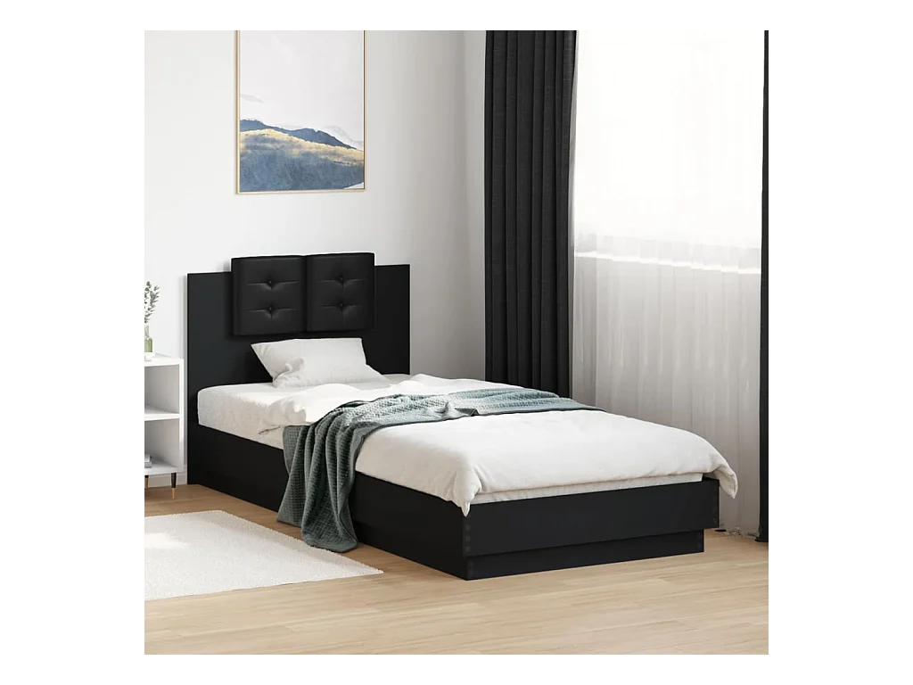 Cama somier con colchón con colchón Tela negra 90 x 200 cm