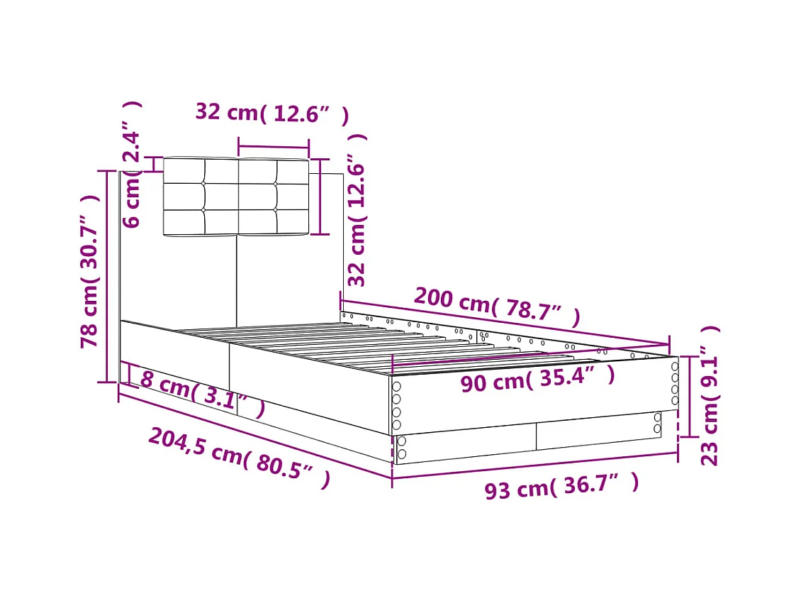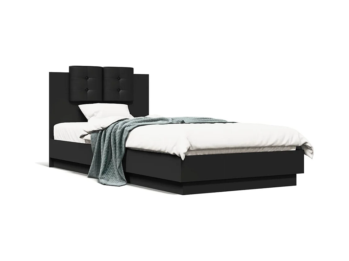Somier de láminas con colchón Negro 90x200 cm Polipiel