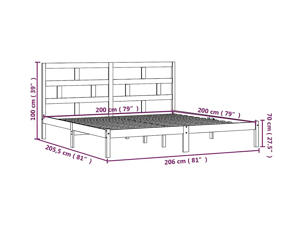 Estructura de cama sin colchón de madera maciza de pino negro 200x200 cm