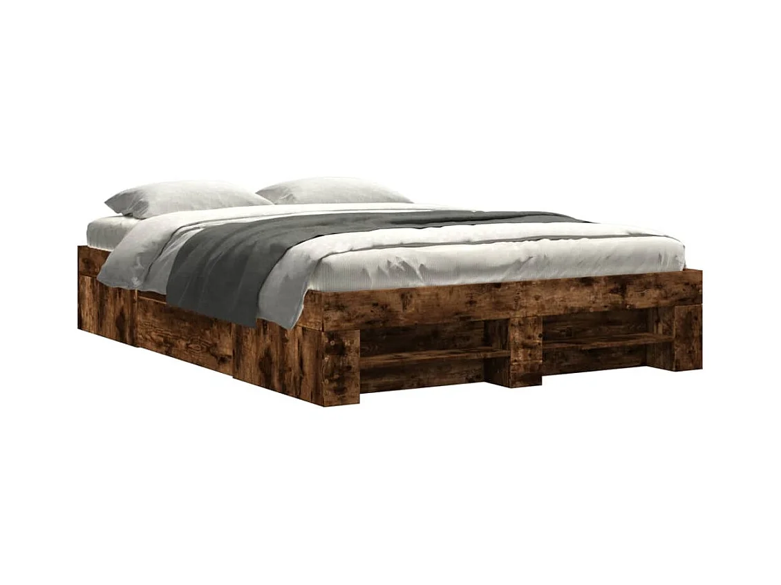 Estructura de cama sin colchón roble ahumado 140x190 cm madera de ingeniería