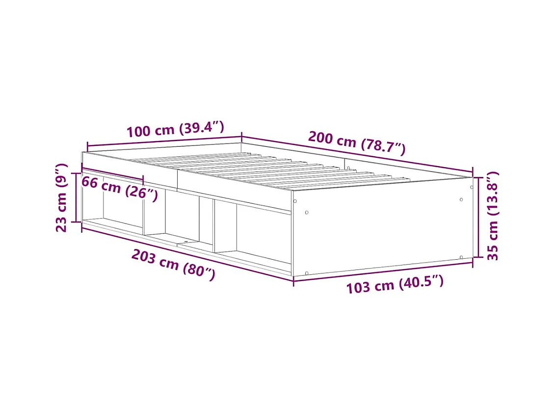 Estructura de cama sin colchón madera roble Sonoma 100x200 cm