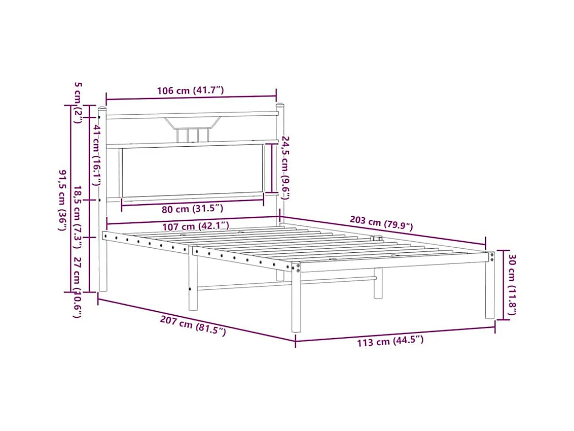 Estructura de cama sin colchón 107x203 cm madera roble Sonoma