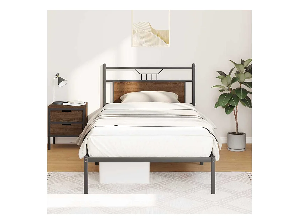 Estructura de cama sin colchón madera marrón roble 107x200 cm