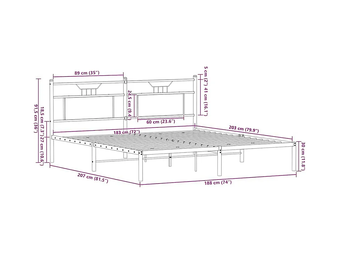 Estructura de cama sin colchón metal roble Sonoma 183x213 cm